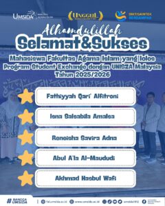 Nama-nama mahasiswa tersebut adalah Fathiyyah Qari’ Alfitroni, Isna Salsabila Amalsa, Reneisha Savira Adna, Abul A’la Al-Maududi, dan Akhmad Hasbul Wafi. Mereka berhasil melewati serangkaian seleksi administratif dan wawancara yang dilakukan oleh tim kerja sama internasional Umsida.